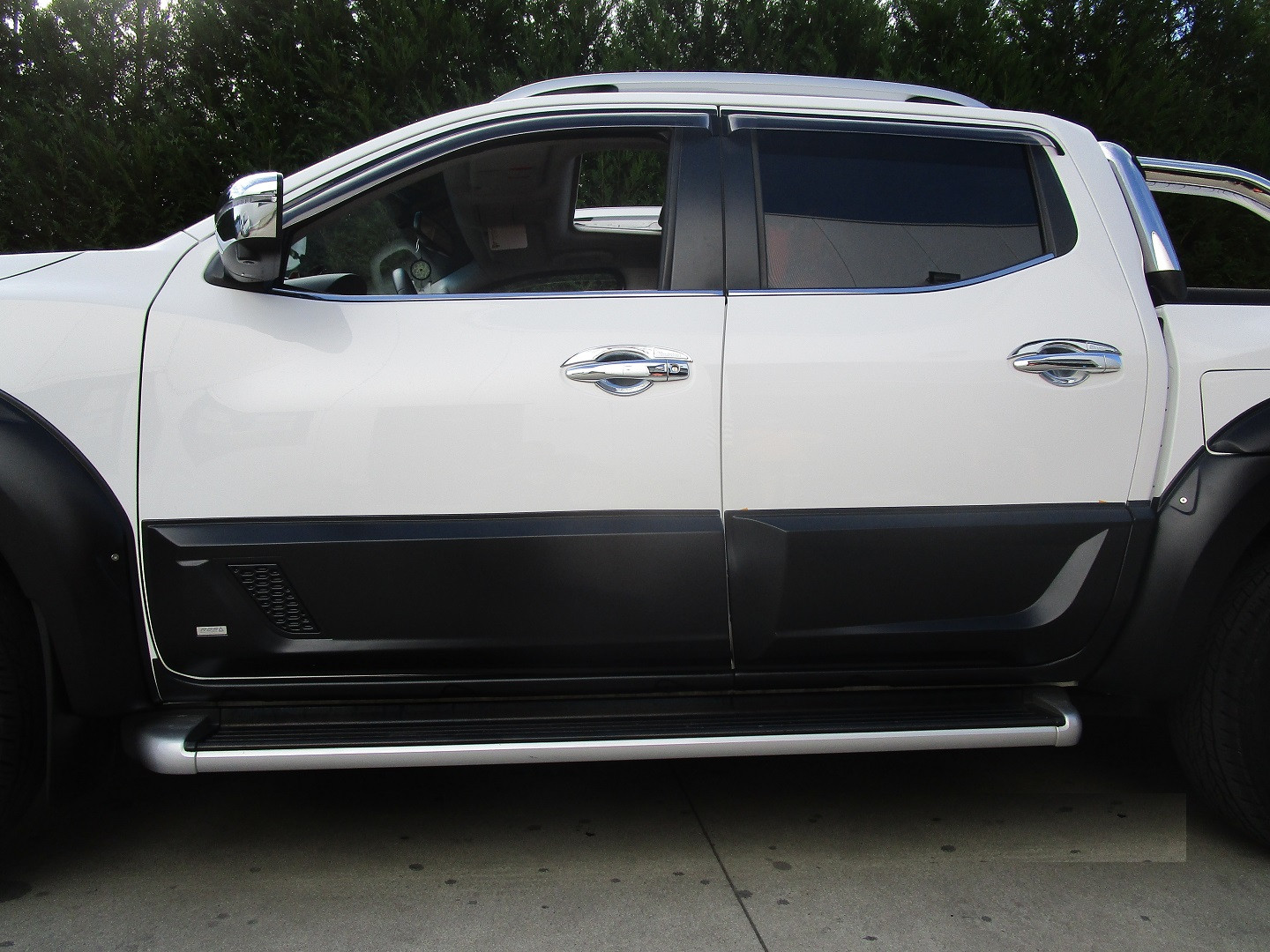 Kit de 4 déflecteurs de vitres - noir fumées à coller sur les montants de portes pour Nissan NP300